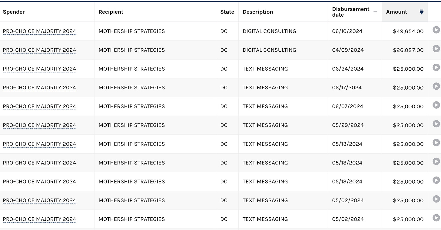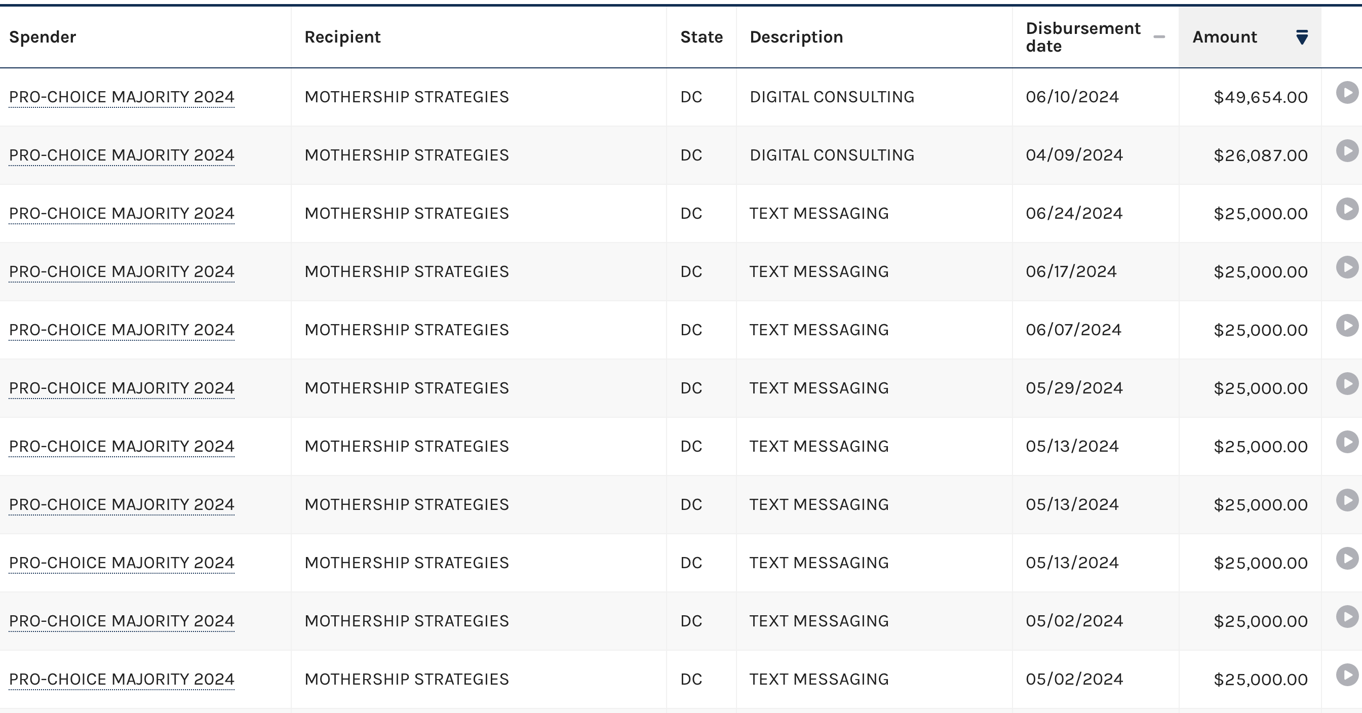 Pro-Choice Majority 2024, for instance, provided nearly half a million dollars to Mothership Strategies. Stop Gun Violence PAC, another group with alarmist messaging—a sample pitch from the group urges donors to sign a petition and contribute in order “to BAN Trump from running for office”—raised just under one million dollars. Over two-thirds of Stop Gun Violence PAC’s fundraising went to consultants, the largest of which was Mothership Strategies.