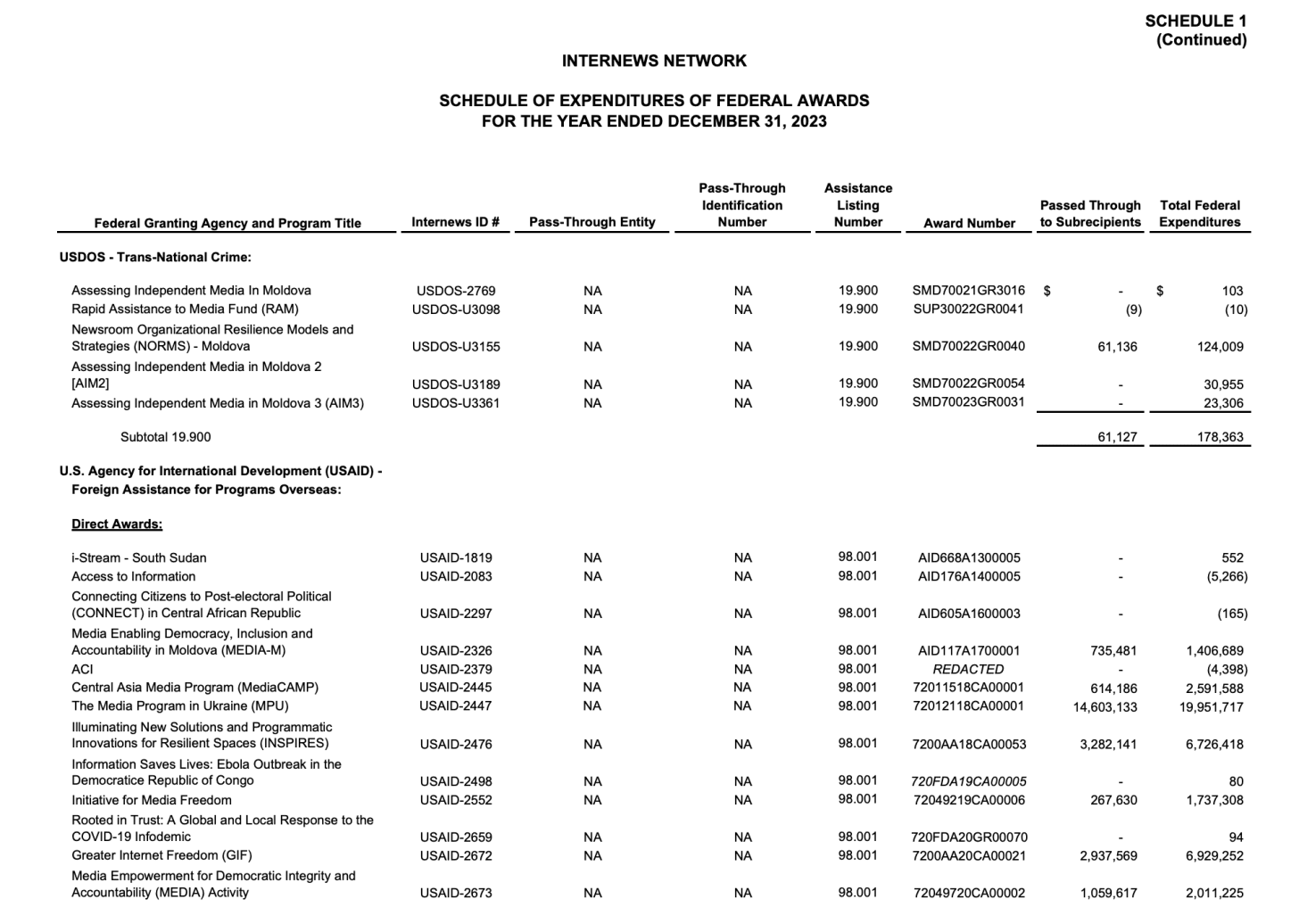 That said, USAID does separately fund various questionable news operations. Coda Story, an anti-disinformation news outlet headquartered in New York, revealed in its audit report that the National Endowment for Democracy – the sister nonprofit that works alongside USAID – provided special grants to finance its journalistic ventures. The Organized Crime and Corruption Reporting Project (OCCRP), a major investigative news outlet responsible for the Panama Papers and other blockbuster news series, relies heavily on State Department and USAID funding. Ryan Grim recently reported that U.S. government money comes with strings – officials have used their leverage over OCCRP to influence editorial and personnel decisions at the outlet.